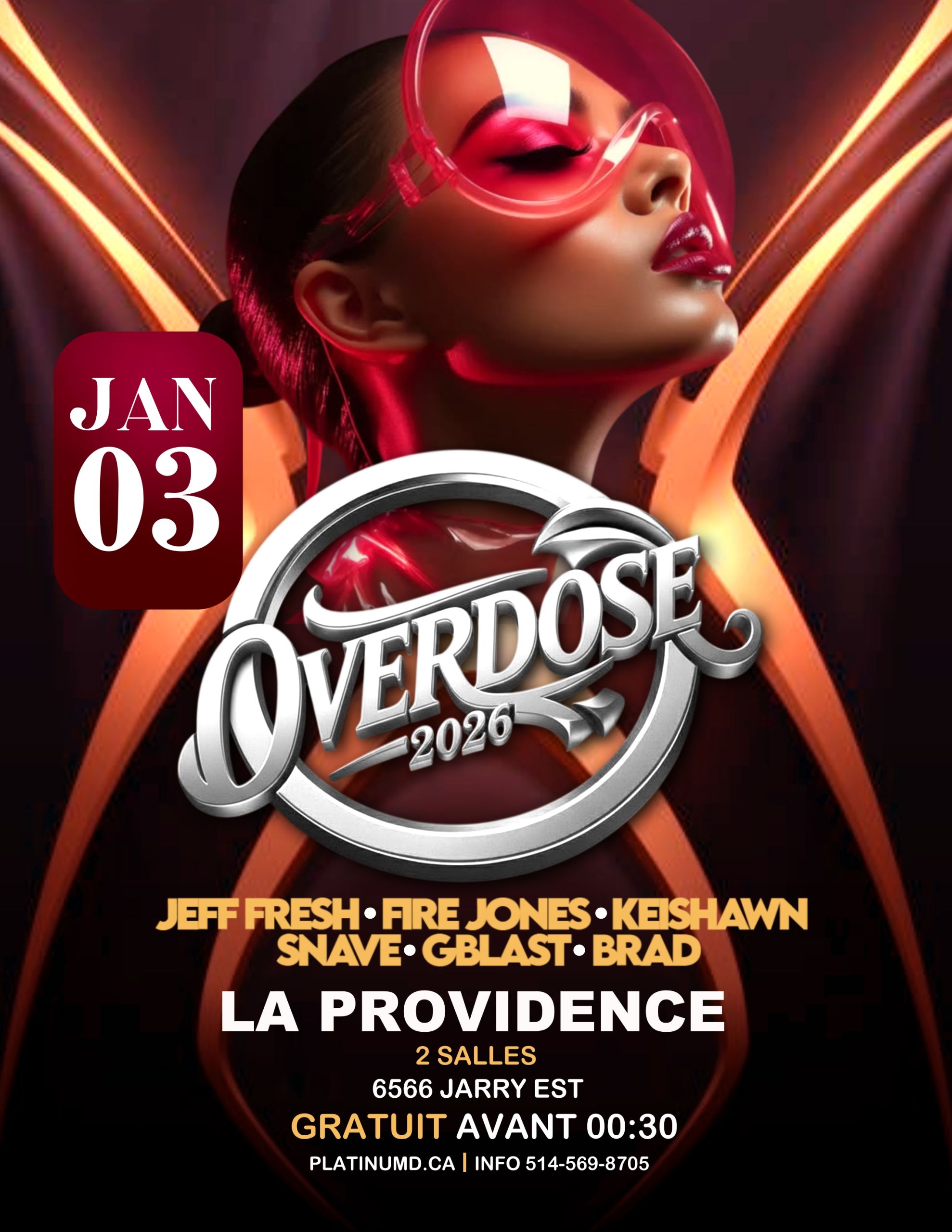 Utilise le code OVERDOSE pour ton billet gratuit 2 BILLETS MAX PAR PERSONNE